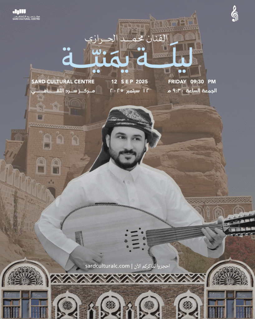 ” ليلة يمنية ” 🎵 انضموا إلينا في أمسية موسيقية لا تُنسى تجمع بين الأصالة والتراث ، حيث تتراقص الألحان مع عبق التاريخ والثقافة اليمنية العريقة في مركز سرد الثقافي . الجمعة 12 سبتمبر9:30 مساءً📍مركز سرد الثقافي
